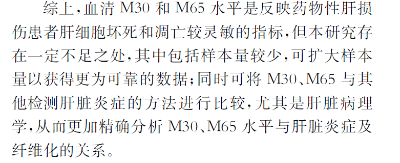 该研究目的主要为明确血清裂解的CK18片段及CK18全长蛋白对药物性肝损伤患者肝脏炎症的诊断价值。结果表明,血清CK18片段及全长的水平是反映药物性肝损伤患者肝细胞坏死和凋亡较灵敏的指标,与肝脏炎症相关,有一定的临床辅助价值。